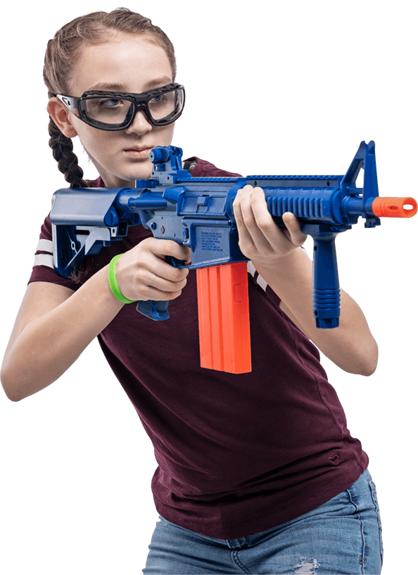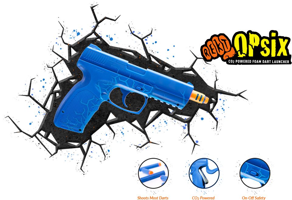 Easy to use REKT Jury Blue CO2 Foam Dart Revolver shoots half-length darts from a removable rotating 6-shot cylinder and is powered by a single 12-gram CO2 capsule.